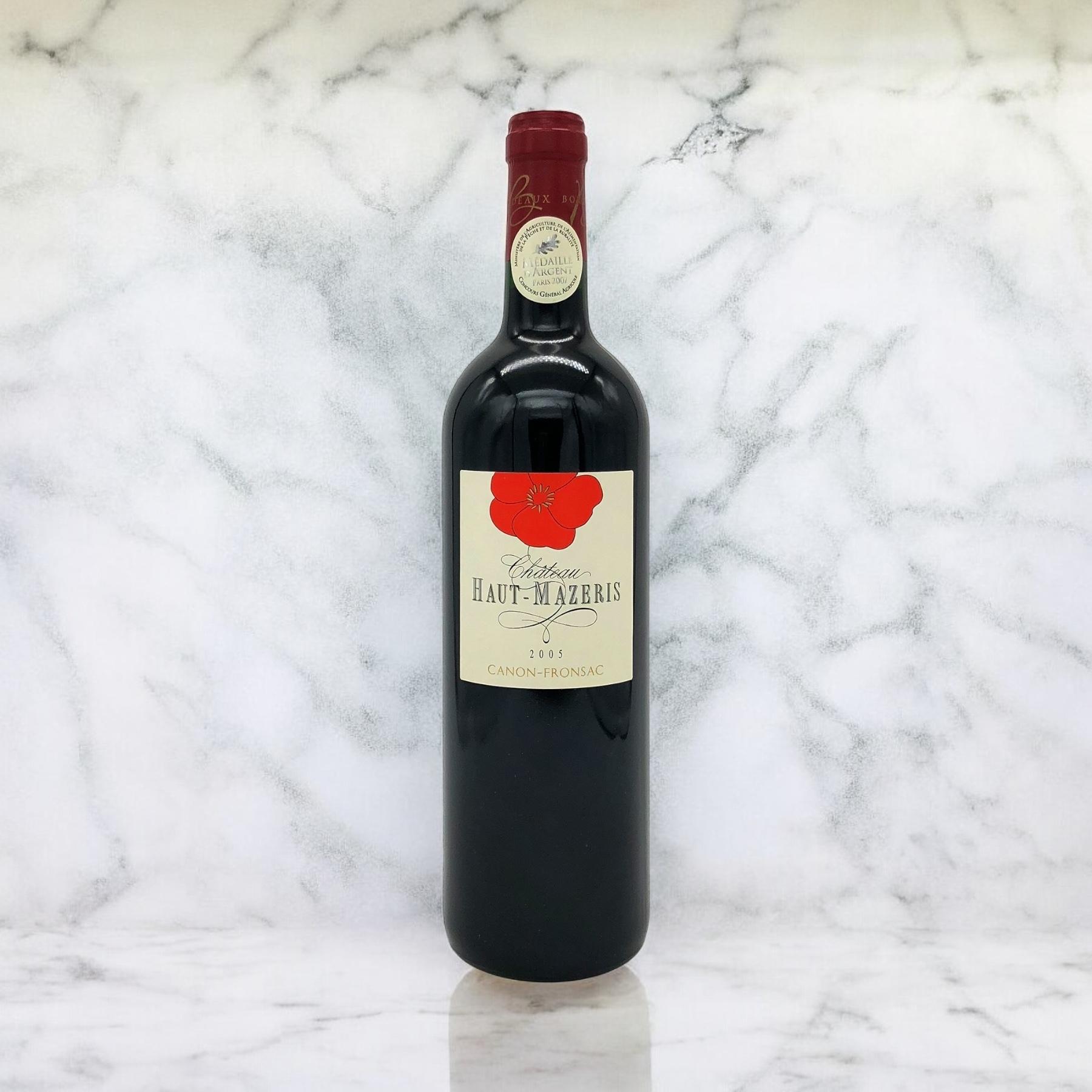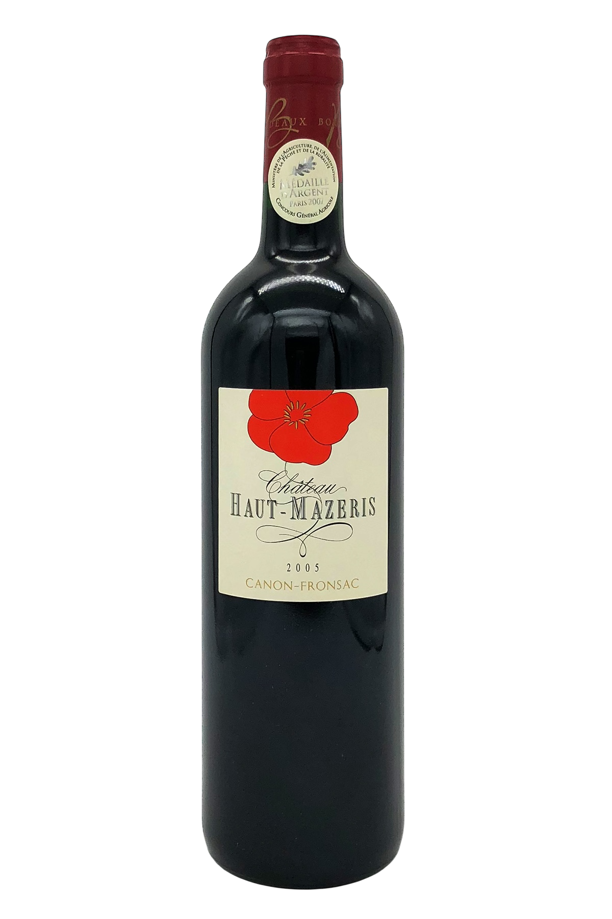 Château Haut-Mazeris 2005 is a structured, medium to full-bodied red wine from Canon-Fronsac, Bordeaux, France. It features notes of blackcurrants, dark chocolate, and black tea, with chewy tannins and a cocoa-powder finish.