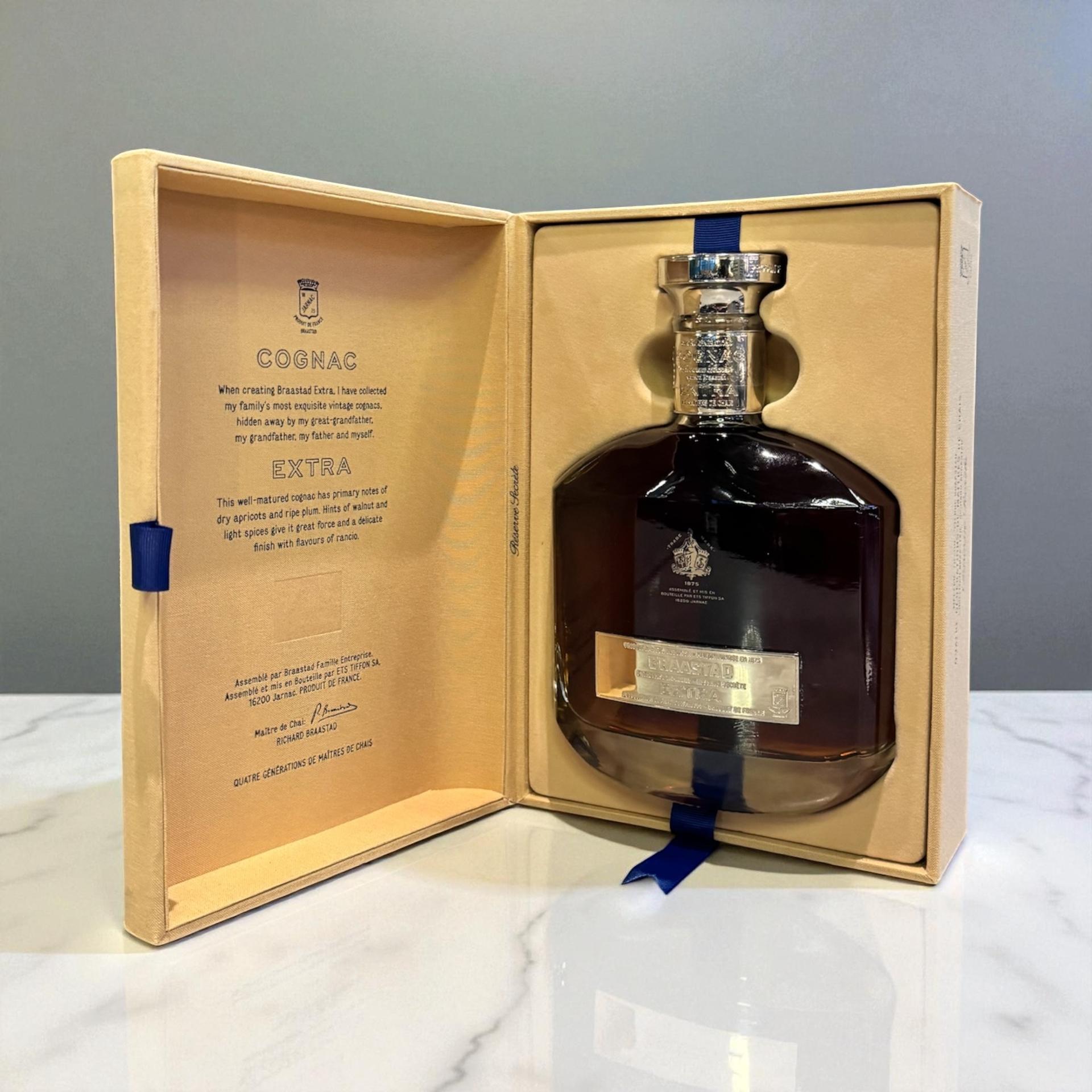 Braastad EXTRA is Braastad family's most exclusive cognac. The pride of the Braastad Family; a secret blend from the Master Blender. This unique blend is embodying the true essence and the "savoir-faire" of Master Blender Richard Braastad. It took Master Blender ten years to finish the blend and when creating he collected his family's finest cognacs hidden away by his great-grandfather, his grandfather and his father.